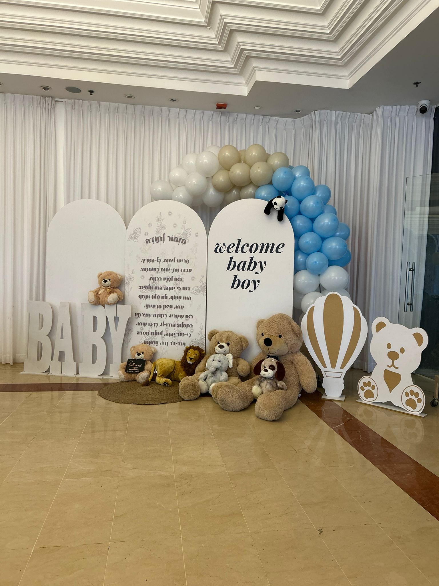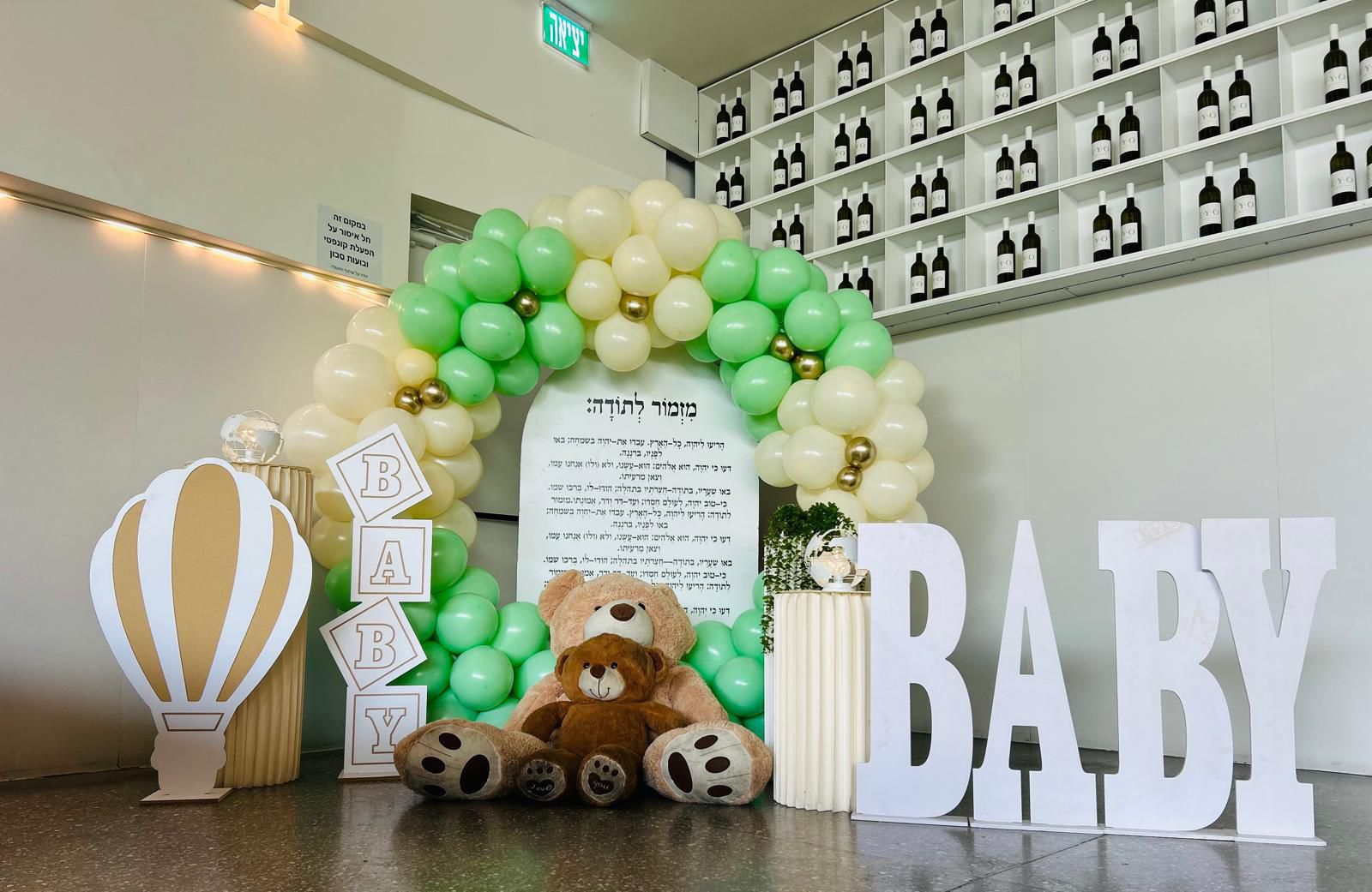 קירות בלונים קסומים ורכים שמקבלים את פני הרך הנולד באהבה.